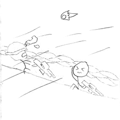 I imagined an apocalyptic world where three-quarters of the global population were robots. These robots were also programmed to kill humans. One of the locations was a power plant – the only source of electricity to run an entire country. The defending soldiers at the power plant were met with a rain of bullets wave after wave. Multiple soldiers risked their lives defending the one power source for their homes. During the final wave, only one defending soldier was left standing. Then, a giant robot also appears. For the sketches, I created two different endings. Either the last soldier throws a grenade into the barrel of the giant robot's gun, or he climbs to the top of the giant robot and takes out the main control system located in its head.