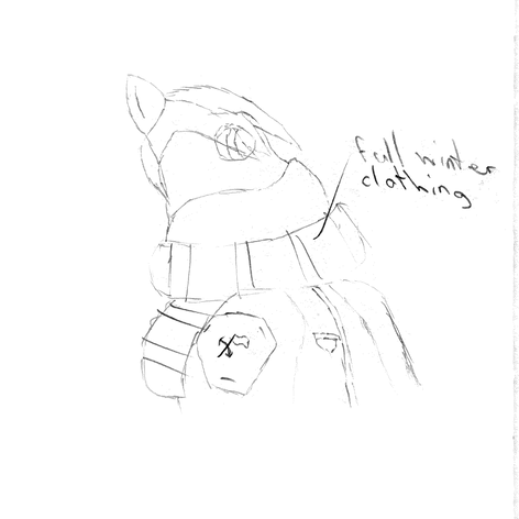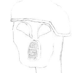 I first imagined the character wearing a dark space helmet with two filters fitted on his armour plated mask. He does special operations for a space police force gathering intelligence while also protecting the colony, just in the shadows.