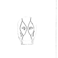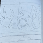 I first saw this totem-like object back at high school through an art classroom window. I saw the totem as a witch doctor's decoration. It was coloured in pitch black on most parts with white or red outlines. Even other parts of the body are dark red. The totem even looked like it was wearing a cloak, revealing its claw sticking out of the totem.