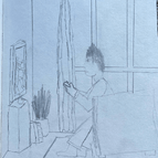 Wanted to practice drawing human characters. When I created this male character, I imagined him in a poor neighbourhood, living in poverty, in a low–quality sheltered home—actually just a shed. Every day, he scavenges for food and resources, making the most of his life until his last breath.
